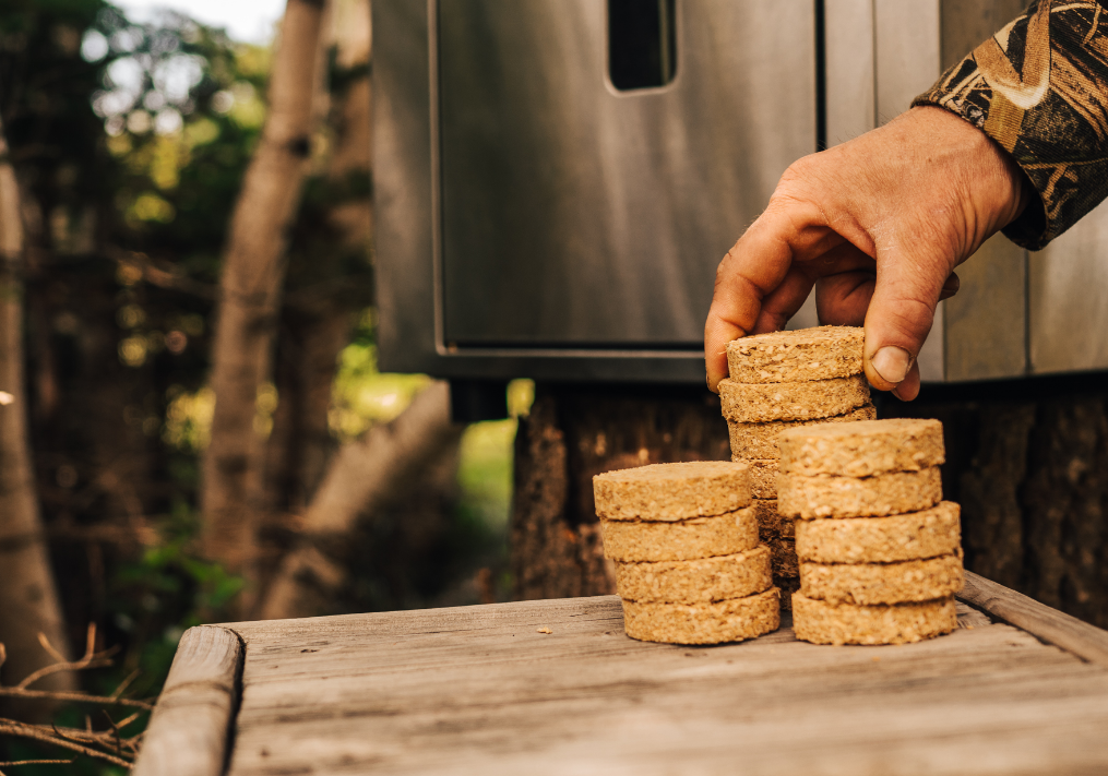 Kärnan i vår teknik är våra unikt designade trärökningsbisketter. Dessa bisquetter är utvecklade för att fungera inom våra Bradley Smokers, vilket gör att de kan skjutas längs med vårt skräddarsydda transportsystem, brännas under en exakt tid och sedan släckas innan veden brinner till aska. Ren röksmak. Varje. Tid.